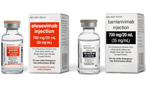 The U.S. Food and Drug Administration issued an emergency use authorization (EUA) for bamlanivimab and etesevimab administered together for the treatment of mild to moderate COVID-19. In a clinical trial of patients with COVID-19 at high risk for disease progression, a single intravenous infusion of bamlanivimab and etesevimab administe...
