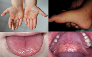 Hand-foot-and-mouth disease (HFMD) is a common but highly contagious acute viral infection due to an enterovirus infection. The disease is most common under the age of 10, and most are under 5 years of age (95%). It can uncommonly affect adults and tends to be more severe in the elderly, immunocompromised, and pregnant women.  What is the cause...